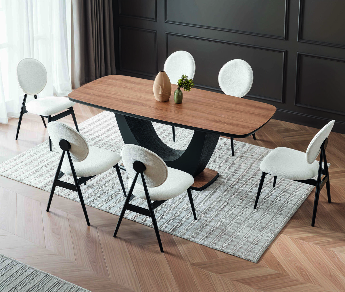 Big Gri Sandalye Hopa Kestane Mutfak Masası Takımı